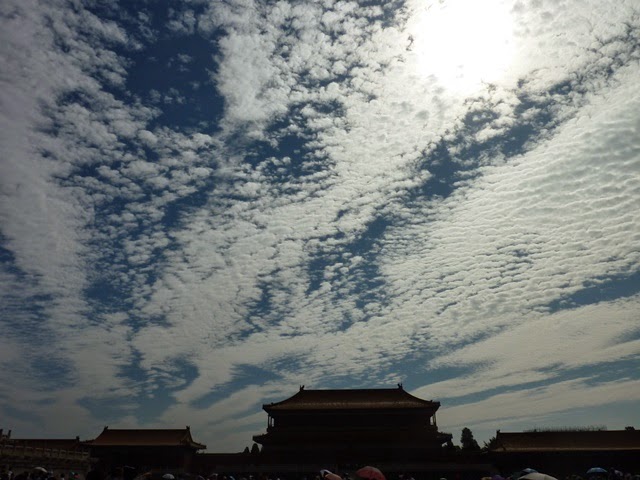 It was blistering hot the day we went to see the Forbidden City, which by Beijing standards is pretty average. The actual Forbidden City (故宫) was, in my opinion, not super-impressive either. To be fair, I've been there before when I was little. Visiting for the second time, I realized why my memories of the place are so sparse - the buildings are essentially all the same, exaggerated wooden structures glazed in red with golden roofs. The actual rooms are mostly empty, since the KMT ran off with most of the things - so most of it's in Taiwan.